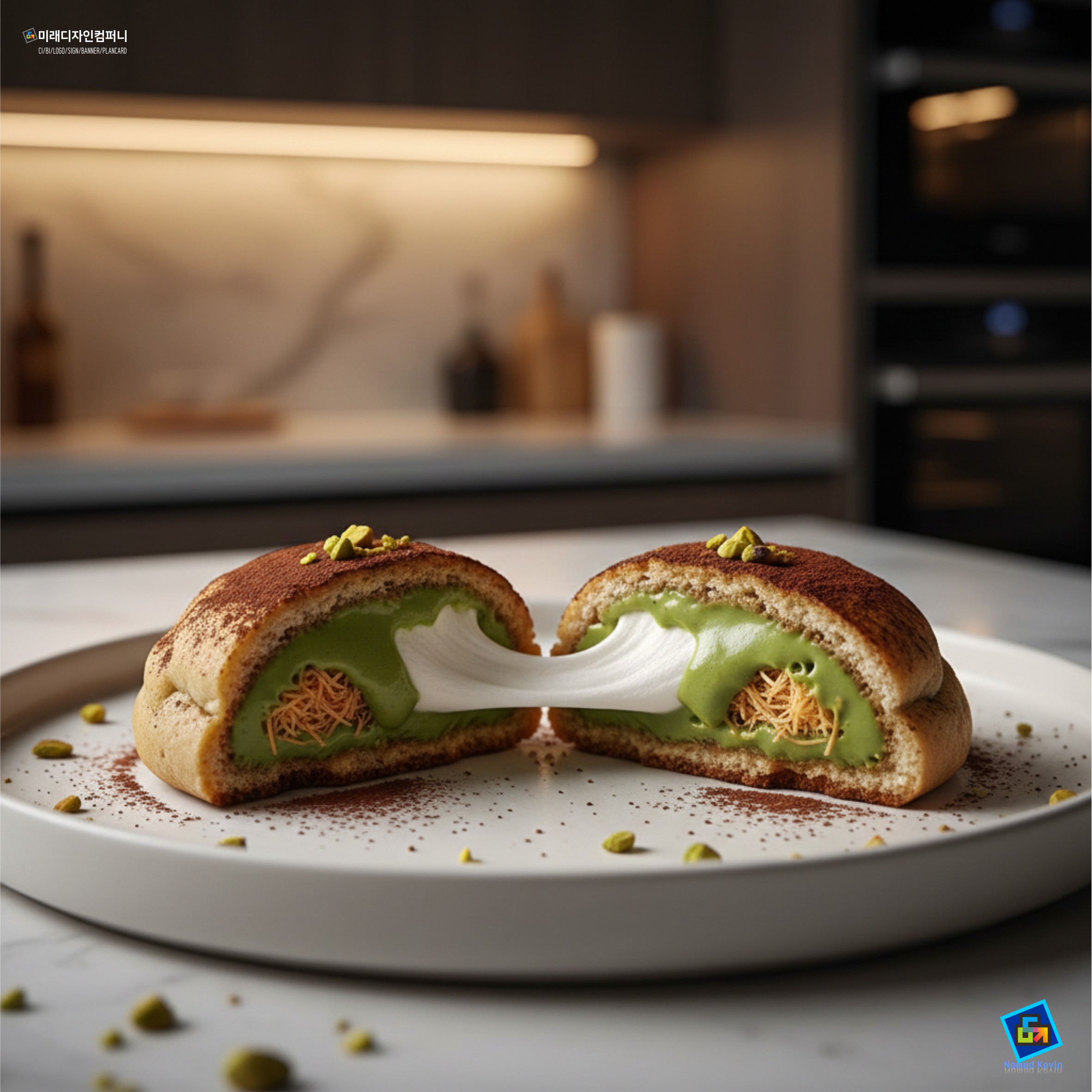 이 디저트가 특별한 이유는 독보적인 '텍스트(식감)'에 있습니다. 두바이 초콜릿의 핵심인 바삭한 카다이프와 고소한 피스타치오 스프레드를 속재료로 사용하고, 이를 마시멜로로 감싸 쫀득함을 극대화했습니다. 여기에 쌉싸름한 코코아 파우더를 겉에 입혀 단맛과 쓴맛의 완벽한 밸런스를 맞췄죠. "겉은 쫀득하고 속은 바삭한(겉쫀속바)" 이 반전 매력이 대중의 입맛을 사로잡았습니다.