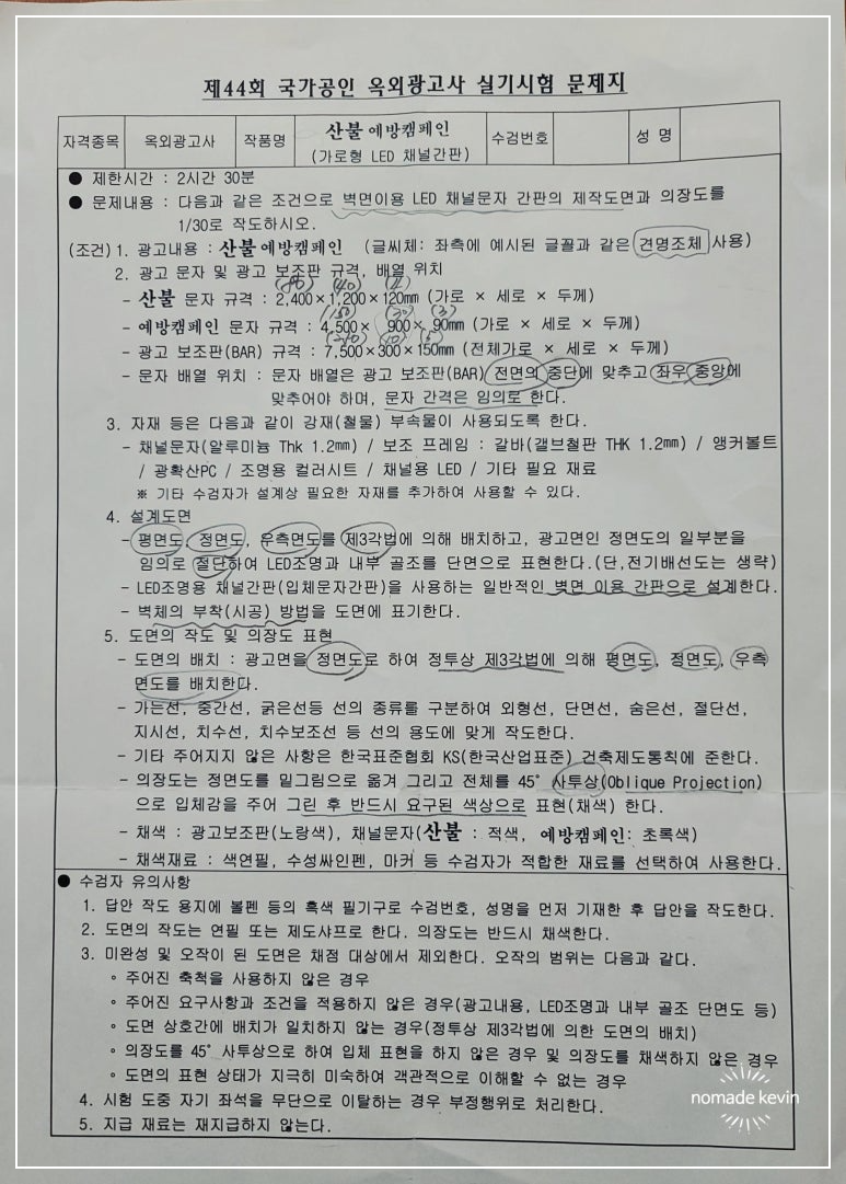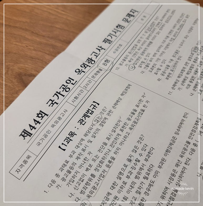 2025년 5월 11일, 드디어 제44회 국가공인 옥외광고사 시험을 치렀습니다. 필기시험과 실기시험을 모두 경험한 따끈따끈한 후기를 공유하며, 앞으로 시험을 준비하시는 분들께 찐! 팁을 드리고자 합니다. 특히 실기시험 시간 관리와 서체 연습의 중요성을 강조하고 싶네요! 그럼, 지금부터 생생한 후기 시작합니다!제44회 옥외광고사 시험 후기